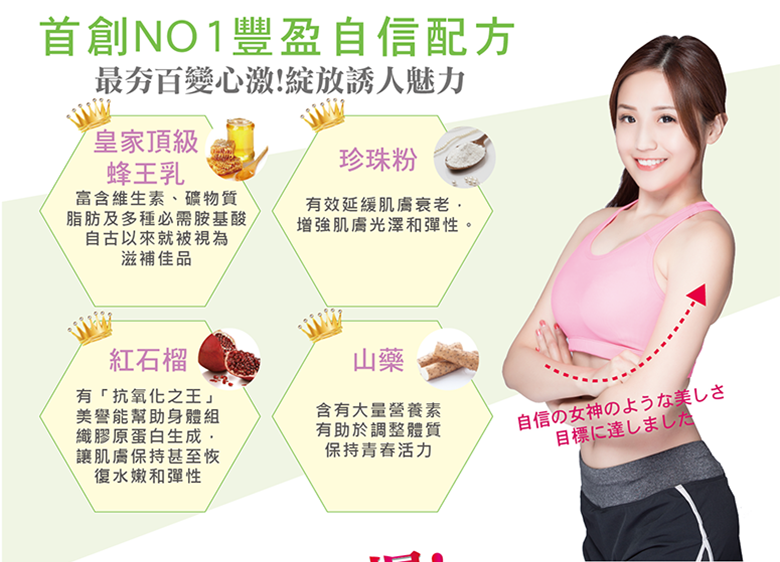 ◆成 份: 青木瓜、蜂王乳、石榴、山藥、珍珠粉、植物性膠囊、水、二氧化鈦